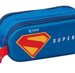 Safta Superman 3D – Portatodo Doble 3D, Estuche Infantil, Estuche Niño, Ideal para Niños en Edad Escolar, Cómodo y Versátil, Calidad y Resistencia, 21x6x8 cm