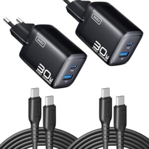 INIU 30W Cargador USB C, 2-Paquetes PD GAN Tech Cargador iPhone Carga Rapida, [USB C + USB A] Múltiple Enchufe Rápido y Cable para iPhone 17 16 15 Pro MAX, MacBook Air, iPad Pro, Samsung S25 Switch